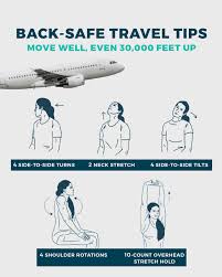 - Neck Rolls – Drop your ear to the shoulder and rotate slowly from side to side, then back to front. This reduces stiffness around the upper trapezius, which often becomes tight after a long flight.