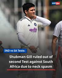 Shubman Gill Withdraws from Second Test in Guwahati After Neck Injury